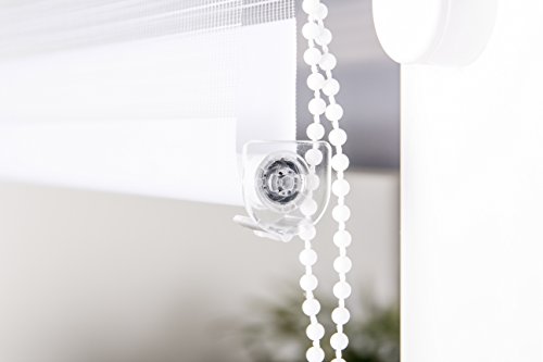 Sun Blind Duo 80 x 150 cm White Easy to clean A child safety lock Individual Light Control Quick and easy to fit Material: Polyester (Thermal Mospez due to a coating, aluminium, plastic With our individually adjustable double roller blind that allows the pad to Fastallen window sizes fit your Mac, so you've got the sun in the handle. Play with light and shadow. As for Optimalelichtverhätnisse give you, the alternating transparent Undblickdicht woven proteins are only so much of Sonnenen pass through the canopy Wiesie it personally. The double roller blind can be very simply plugs into the Horizontalverschiebbaren clamping straps hanging up. This gives the Großenvorteil that the mounting No leaves no damage or on the wall Oderfenster. Another highlight of the duo rolls is the child safety catches Diein form a security has been implemented. So that Diekette fixed to the wall, so that the kids won't be Passierenkann.