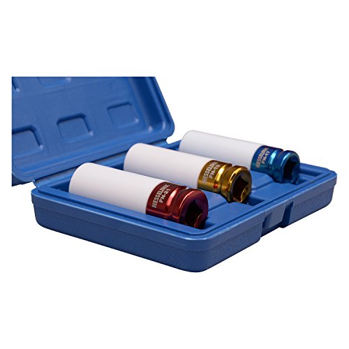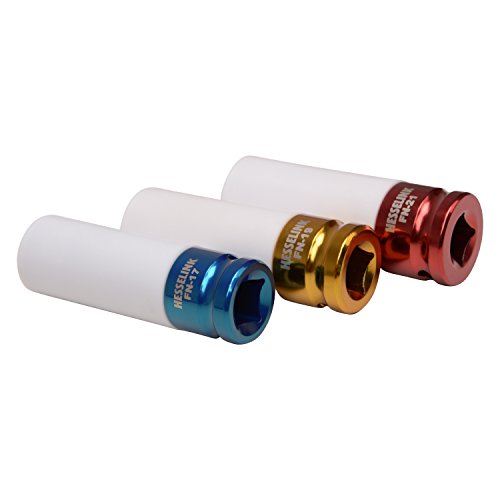 The Hesselink FN-300 special wheel nut set includes three impact wrench-compatible nuts (17, 19, and 21 mm) made from durable chrome molybdenum steel. Each nut features a protective plastic coating to prevent alloy wheel damage and is designed with deep embedment for secure fastening. Color-coded and laser-engraved for quick size identification, the set comes in a handy storage box, making it an essential upgrade for professionals and enthusiasts aiming for flawless wheel changes.
