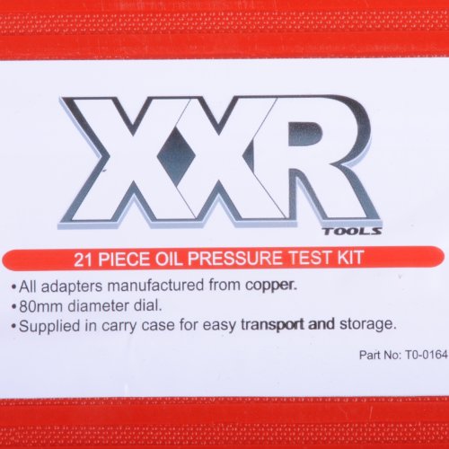 21 piece professional oil pump pressure testing kitDesigned for quick, accurate oil pump pressure testing this kit also helps identify faulty oil pressure switches and warning lightsA must have kit for professional and home diy mechanics alikeOil primed hose for superior flexibilityKit includes quick coupling adapters for versatilityLarge 80mm diameter gauge for quick, accurate readingsConvenient and portable for quick, easy use wherever the jobSupplied in blow-moulded carry case for easy storage and portabilityLong, lasting and durable construction for a long service life.