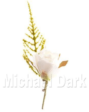 Artifical White Rose/Fern Wedding Buttonhole/Corsage with pin
