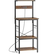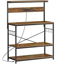 The SUPERJARE Large Bakers Rack is a 6-tier kitchen organizer featuring 2 built-in AC outlets and an air switch for convenient appliance charging. Crafted from durable engineered wood and metal, it offers 10 open storage cubes, a wire basket, and 12 S-shaped hooks, supporting up to 110 lbs. Its rustic brown finish and sturdy design make it a stylish, multifunctional addition to any kitchen, perfect for organizing appliances, cookware, and more.