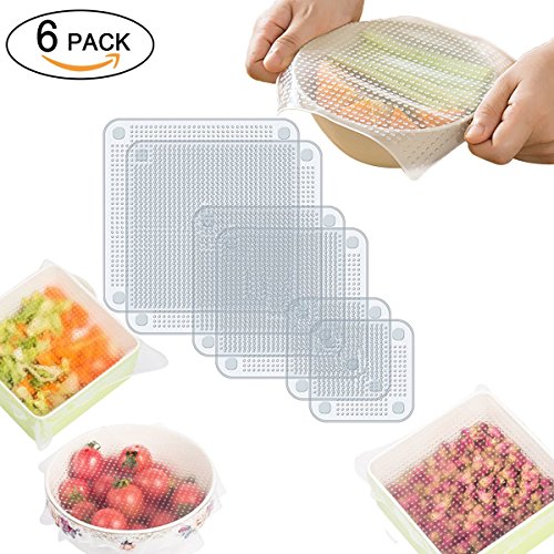Tmade Reusable Silicone Stretch Lids / Food Save Covers The food wraps are made of durable, stretchable silicone so you can stretch it into any shape you like. It can be used in the refrigerator, freezer and microwave. Transparent design make food can be seen easilyand clearly. It has 6 pieces in 3 sizes, so there's always one that fits. The food wraps are environmentally-friendly,Perfectly keep the food, fruits, vegetables fresh and clean.eliminating the need to repeatedly buy expensive plastic wrap. It's a fast and easy way to keep food tasting great! Food wrap Size : 20cm x 20cm/7.87"*7.87" 2pcs 15cm x 15cm/5.9"X5.9" 2pcs 10cm x 10cm/3.94"*3.94" 2pcs Note: 1. Wrap with the smooth side of the cover and please operate without water. 2. After each use, clean lids with soap and hot water or put in the dishwasher. 3. Avoid abrasive or force-foam cleaners.. 4. Please keep the plastic silicone wrap away from the fire and the pointed hard object. Package includes: 6pcs silicone food wraps. Color:6 Pack Silicone Food Wraps