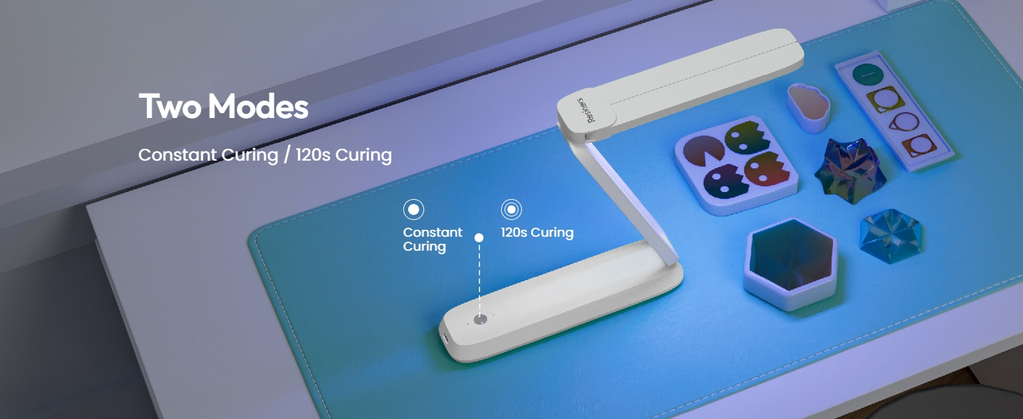 The Resiners UV Light is a sleek, foldable, and rechargeable ultraviolet lamp designed for professional resin curing. Featuring 22 UV beads emitting 320-420nm wavelength, it offers rapid and even curing with adjustable height and width settings. Its dual-mode operation and wireless capability provide unmatched convenience, while its versatile 3-in-1 design supports desktop, handheld, and wall-mounted use. Beyond resin crafts, it doubles as a multi-functional UV tool, making it a must-have for creative professionals and hobbyists alike.