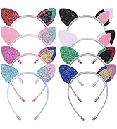Fishdown Cute Cat Ears Headbands Set for Girls Plastic Headbands for Non-slip Transparent Cat Ears Headbands Quicksand(7pcs Per Pack Each Color 1pcs)