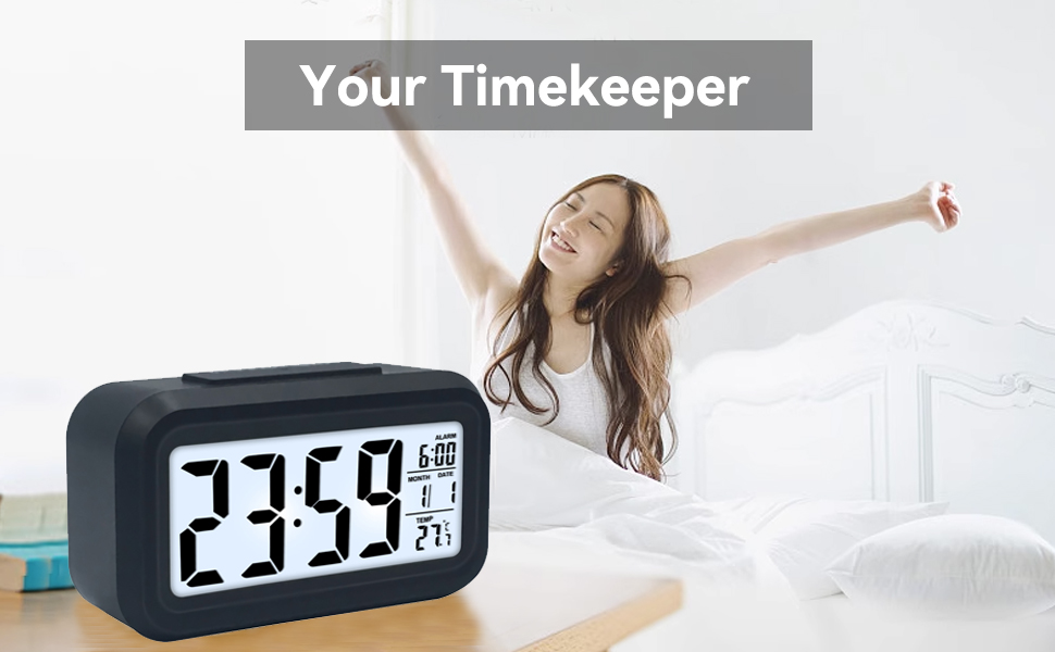 Smart Nightlight Digital Alarm Clock Battery Operated Table Electronic Clock Easy Operation Clock with Date Indoor Temperature for Kids