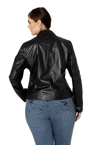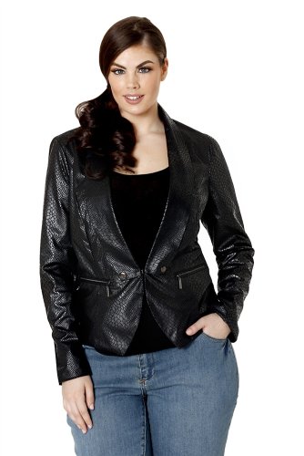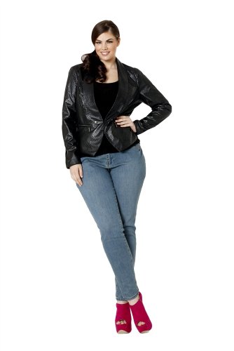 The Lower East Side tuxedo jacket in python printed faux suede offers the structure of a fitted blazer with the elegance of a tuxedo. With the edgy zipper front pockets and a single hook and eye clasp, you feel confident and sexy, ready for your night out on the town.Model is wearing a size 1X.Fabric: 100% Polyester lining and shellCare: Handwash only. Do not iron. Do not bleach. Do not dry clean.